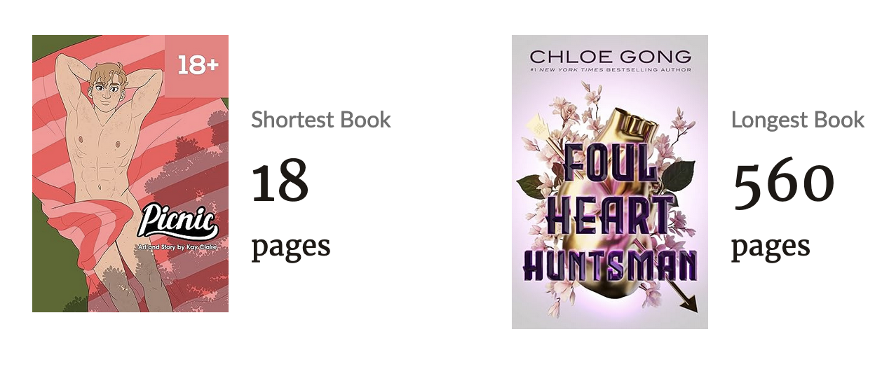 I read quite a bit of fantasy apparently? I think they were mostly graphic novels but hey, I ain’t questioning that. Not sure how page length affects that *shrugs*